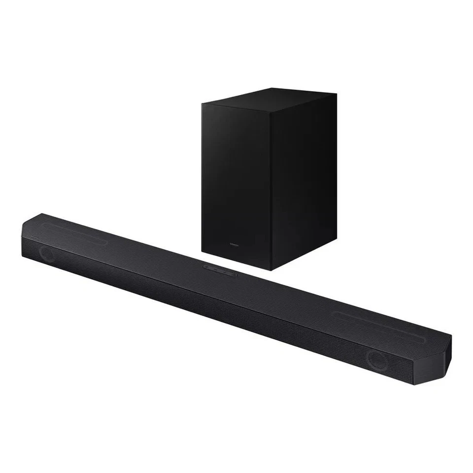 With Dolby Atmos and DTS:X, the soundbar projects audio in multiple directions, creating a surround sound effect that pulls you into the action. Thanks to Samsung Q-Symphony, the HW-Q600C/XA syncs perfectly with compatible Samsung TVs, using both TV speakers and soundbar for an enhanced, room-filling sound.